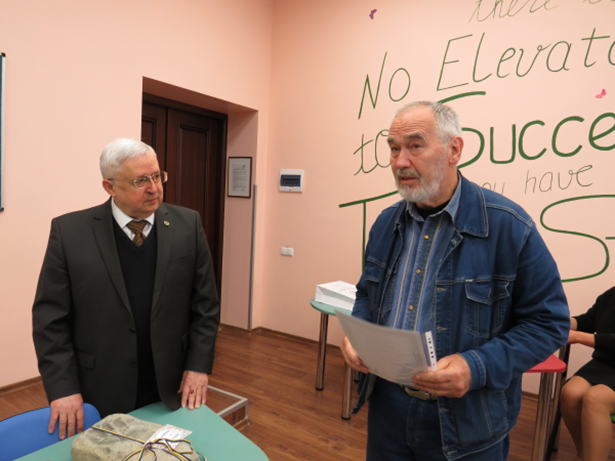 Віктор Андрущенко привітав учасників заходу, зауваживши важливість й необхідність такого музею для студентів та молодих науковців, та подарував музею свою знахідку – зуби мамонта.
