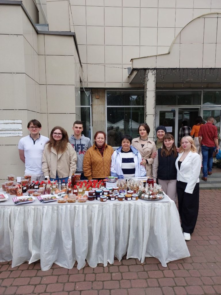 Активні й небайдужі студенти-біологи 12Б та 32Б груп природничого факультету разом з доцентами кафедри біології Н.В.Мельниченко та А.В.Кустовською і завідувачкою лабораторії Т.М.Мішиною взяли участь у благодійній виставці-ярмарку у Національному ботанічному саду імені М.М.Гришка НАН України, організованій для збору коштів ЗСУ.